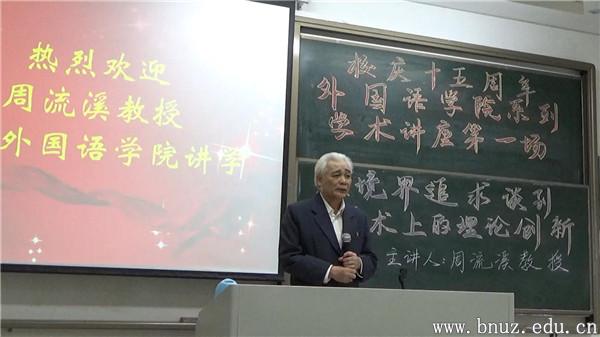 本网讯(通讯员 李羽腾)11月23日晚,外国语学院十五周年校庆系列学术讲座第一场于乐育楼C212举行。著名教育家、学者、诗人,ylzzcom永利总站线路检测外文学院周流溪教授为学院老师和研究生们带来了一场题为“从境界追求谈到学术上的理论创新”的学术讲座。