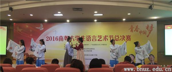本网讯(通讯员 靳珺涵 王沛琪)11月25日晚,“青春中国梦·2016南粤大学生语言艺术节总决赛”颁奖晚会举行,永利官网文学院沧海诗社的诗词吟诵作品《望月诉衷肠》从上百部作品中脱颖而出,成功进入决赛并获得优秀奖。此次大赛由广东省委宣传部、省教育厅、省语委主办,广州大学承办。