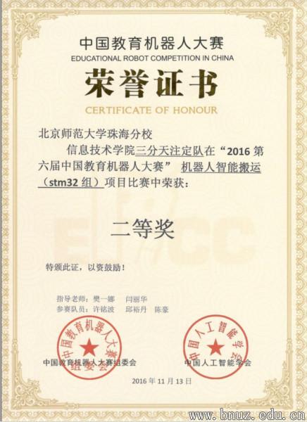 本网讯(通讯员 樊一娜)第六届中国教育机器人大赛2016年11月12日至13日在武汉华中科技大学光谷体育馆隆重举行,来自全国近百所学校共304支代表队近千人参加了此次大赛,规模创历届之最。经过激烈角逐,永利官网信息技术学院电气工程及其自动化专业的“三分天注定”和“七分靠打拼”两支代表队分别获得了智能搬运(STM32组)“二等奖”和双人擂台赛“二等奖”。