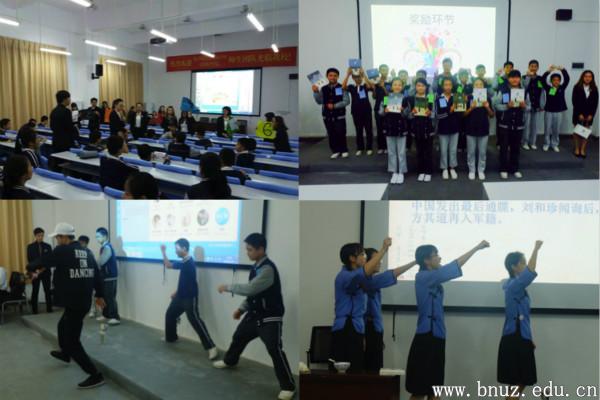 本次活动,应用数学学院师生们精心筹备,北山中学同学们积极参与,多方呈现当代大学生活的具体风貌。“世界名校篇”勾勒大学梦想;“大学校园生活篇”展现大学生风采;“益智互动篇”以数学计算为蓝本,教与学融合贯通调动全场气氛;“校园风采篇”自编自导自演话剧《乱世佳人》彰显爱国青年的坚定信念,而ROCK 舞队的动感表演则将活动气氛推向高潮。