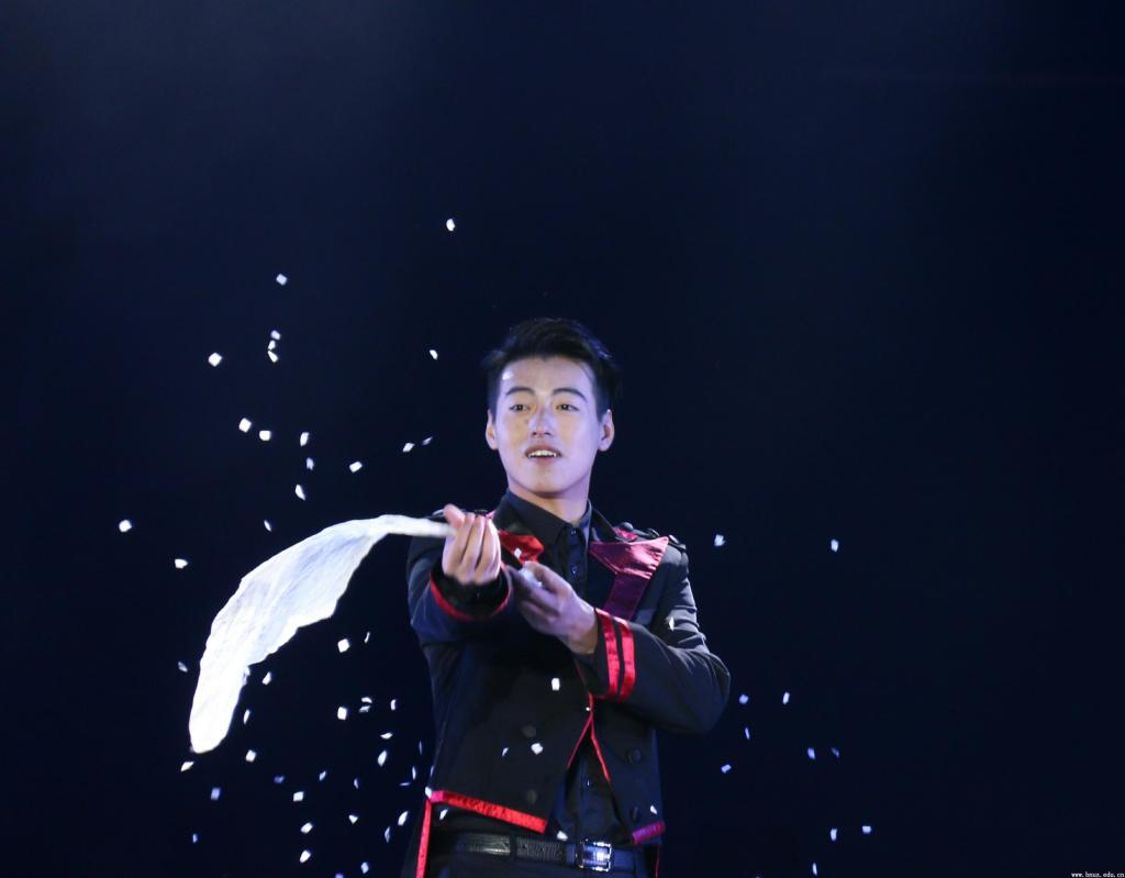 歌舞《欢聚一堂》,映照出喜庆祥和的热闹景象,蹬着轮滑鞋的学生们高举国旗、北师大校旗、珠海分校校旗以及各学院(部)旗帜出场,掀起了晚会的第一阵高潮;由老年、中年、青年教师以及教师子女、校艺术团国标部、唐家湾幼儿园小朋友们带来的舞蹈串烧《让爱住我家》展现出了师生们自信洋溢的精神风貌;选自永利官网真实建校经历的配乐诗朗诵《我们正年轻》,配合着精彩的沙画表演让现场师生动容;舞蹈《绿舞翩跹》,舞者舞姿曼妙,翩翩舞袖,轻盈而素雅,象征着15岁的珠海分校生机勃勃;而动感十足的街舞表演《HI,BNUZ》让青春的舞台放射出中西文化交融的光芒。