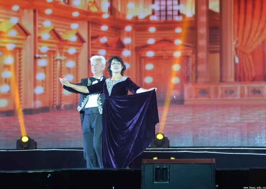从两个月前就开始排练,彩排了将近五次。这个节目是老、中、少年一起表演的,老教授原本都没有舞蹈基础,都是跟着老师同学现学的,一直特别认真,热情洋溢地参与训练,在他们身上同样感受到了青春的气息。
