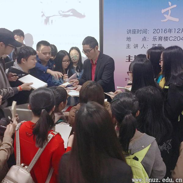 本网讯(通讯员 张宇璇)12月15日晚,北师大校友、著名作家苏童来校举办讲座,为分校师生分享自己的文学创作之路,吸引了文学院众多师生及其他学院文学爱好者前去聆听,现场气氛十分热烈。讲座由ylzzcom永利总站线路检测珠海分校校友会、文学院、校团委联合主办。本期讲座列入学校团委主办的京师讲坛。
