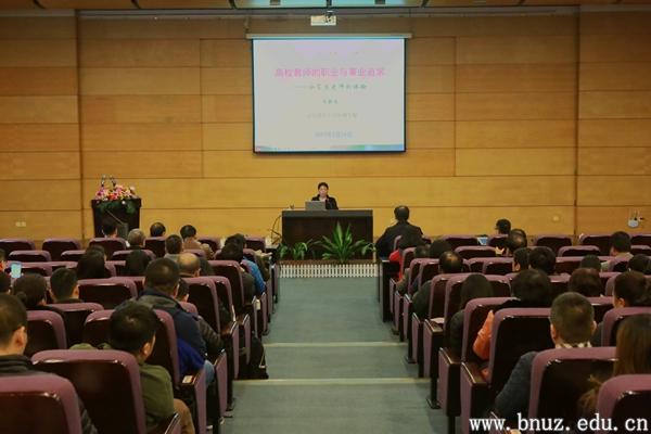 本网讯(记者 王薇)2月24日下午,ylzzcom永利总站线路检测地理科学部教授、博士生导师王静爱应邀来分校举行了题为《高校教师的职业与事业追求》的讲座,为分校教师分享了她30多年教书育人的经验和体会,近300名教师聆听了讲座。讲座由校长涂清云教授主持。
