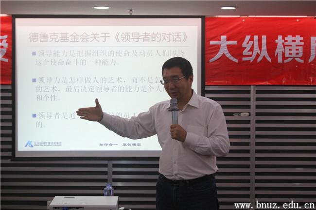 签约仪式之后,王璞为现场嘉宾作了题为《领导力》的学术讲座。他结合专业理论知识及多年的咨询行业经验,以风趣幽默的语言介绍了领导力的内核、情境、行为与应用,并着重分析了领导力的特质,指出领导力的核心在于感召人才、实现梦想。此外,他还借助优秀人士的成功案例激励大家要对标优秀人才的卓越特质,唯拼不败、唯变不败,持续学习、不断成长。