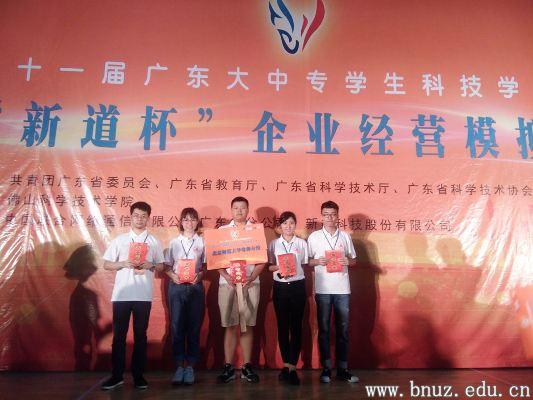 本网讯(通讯员 李佳欣)5月13日上午,第十一届广东省大中专学生科技学术节“新道杯”企业经营模拟沙盘大赛拉开帷幕。此次比赛共有本科、高职高专两个参赛组共计89支队伍参赛,永利官网国际商学部团委书记姚迪老师带领2014级电子商务专业和2015级金融学专业的五名同学陈星全、郭骥哲、李佳欣、李一鸣、邬丹辰代表永利官网参加此次大赛,经过两天的激烈角逐,最终永利官网代表队荣获三等奖。
