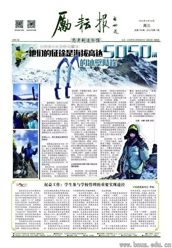 励耘报讯(记者 高健欣 谢毓)2016年度广东高校校报好新闻评选结果日前揭晓。在818篇参赛作品中,《励耘报》选送的13件作品脱颖而出获多个奖项。其中,刘睿、张萌、宋悦采写的《他们的征途是海拔高达5050米的冰壁陡崖》荣获通讯类新闻一等奖。另外,在专题类、消息类、摄影类、版面类、言论类、通讯类、标题类等新闻类别中分获5项二等奖,7项三等奖。