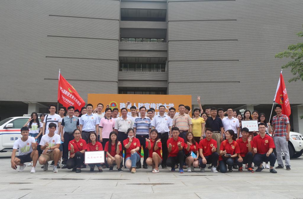 励耘报讯(记者 辛笑帆 叶演莹)6月9日上午10点,由珠海市人民防空办公室主办,羊城晚报报业集团驻珠海记者站、北师大珠海分校联合承办的“珠海人防宣传进校园暨2017年大学生志愿者招募启动仪式”在永利官网图书馆前广场举行。珠海市人防办主任鄢赤军,副主任沈吉伟、陈琳,羊城晚报驻珠海办事处主任林丹、副站长吴国颂,北师大珠海分校党委副书记金洋,以及各区人防办负责人、高新区团委负责人,北师大珠海分校、北理工珠海学院师生共约200人参加了此次活动。