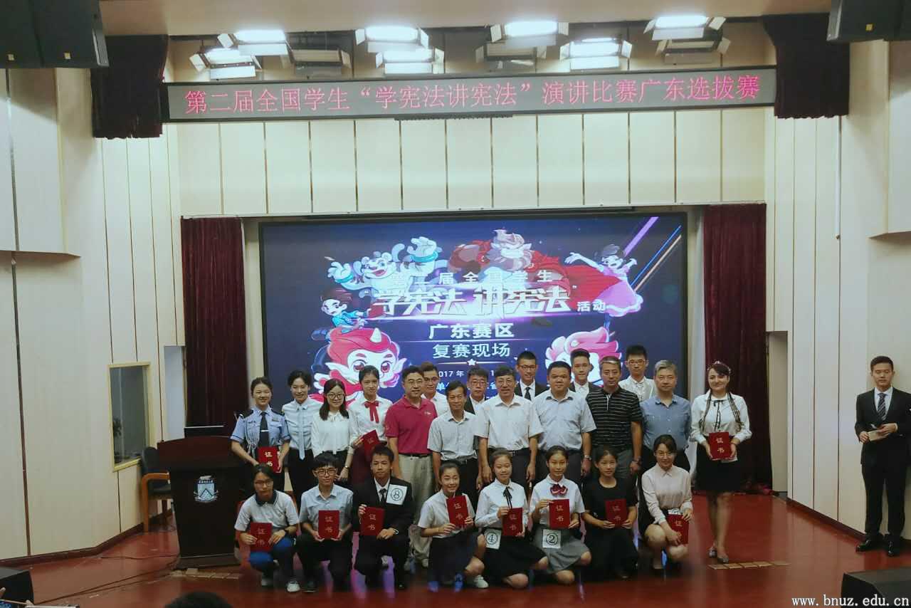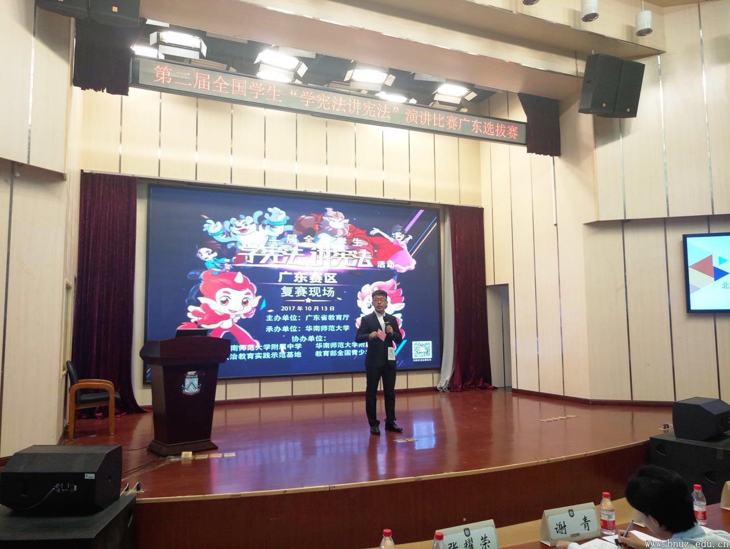 本网讯(通讯员 陈幸)10月13日,由广东省教育厅主办,华南师范大学承办,华南师范大学附属中学、华南师范大学附属小学及教育部青少年普法网协办的第二届全国学生“学宪法讲宪法”活动广东省选拔赛复赛在华南师范大学顺利举行。永利官网法律与行政学院2016级法学专业的李昌昊同学荣获高校组二等奖。