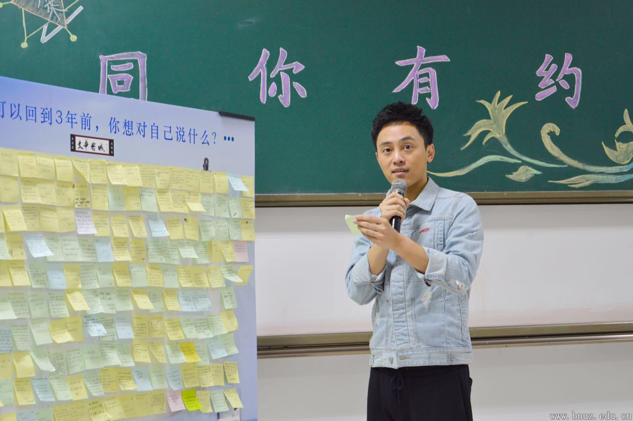 在互动环节,同学们踊跃提问,刘同耐心而又富有针对性的解答,让同学们对于大学生在职业舞台上的定位有了更加深刻的了解和认识。刘同在分享了关于“你想对三年前的自己说什么”的留言后,鼓励同学们积极面对大学生活,创造属于自己的未来。