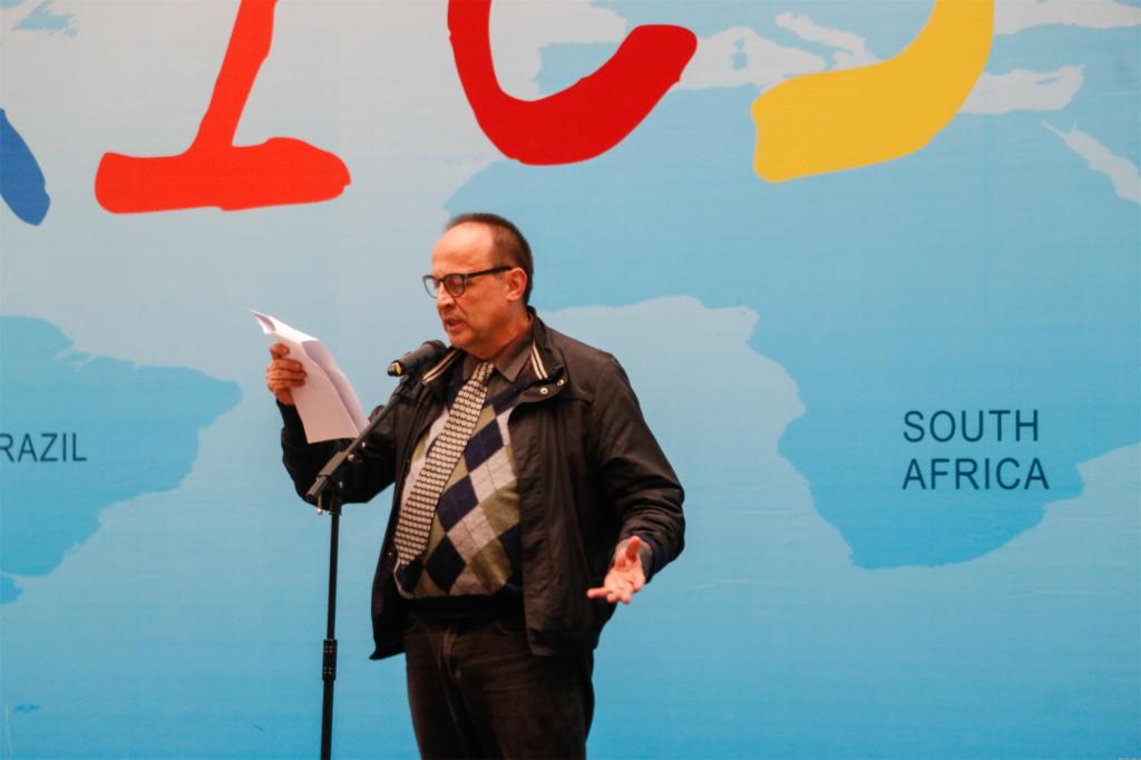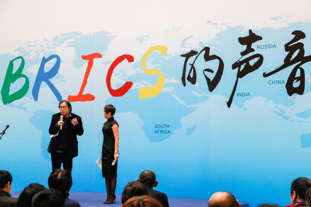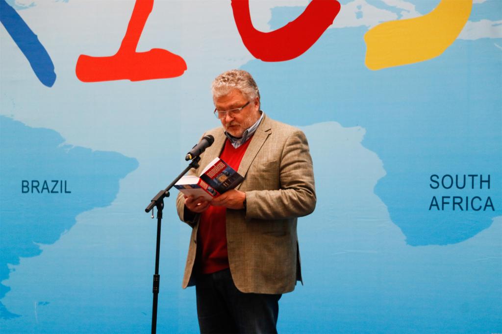 本网讯(校记者团:李月琛 贺钰涵 卢文钰)2017年12月17日下午3点30分,金砖五国作家代表齐聚永利官网图书馆二楼中庭开展文学作品朗诵会,这是金砖国家文学论坛的最后一项议程。作家代表依照“BRICS” (巴西、俄罗斯、印度、中国、南非)顺序依次上台朗诵,展现本国文学风采。此次朗诵会由著名诗人、ylzzcom永利总站线路检测特聘教授西川和中央电视台主持人田薇共同主持。