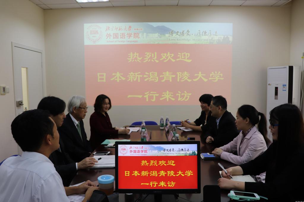 本网讯(通讯员 孙冬雪)3月28日,日本新泻青陵大学校长谏山正教授一行来访永利官网外国语学院。外国语学院院长、党总支书记陶文好教授等接待了谏山正校长一行。