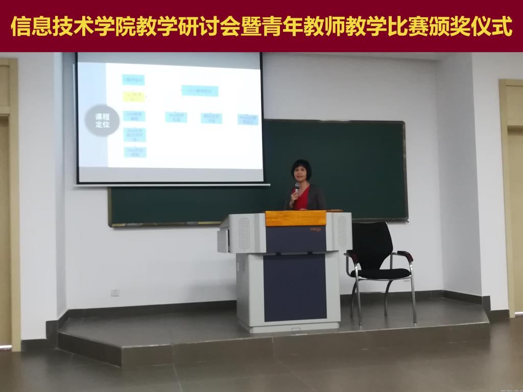 本网讯(通讯员 王宏斌)5月28日下午,信息技术学院召开教学研讨会暨青年教师教学比赛颁奖会。学院领导、教学委员会成员以及全院全体教师出席此次教学活动。会议由学院副院长黄静主持。