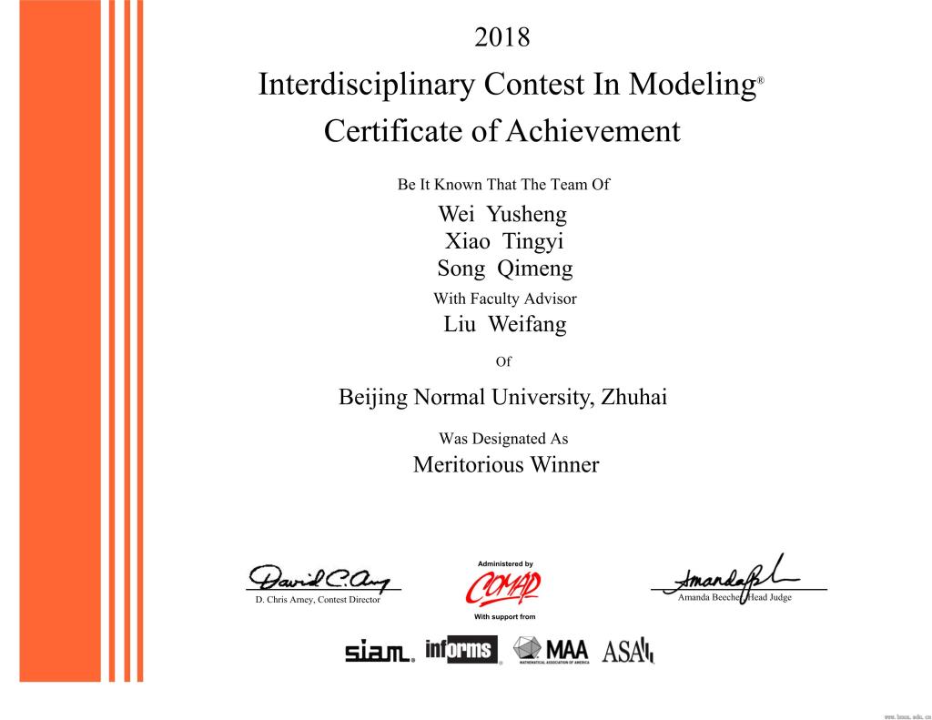 本网讯(通讯员 包孟红)近日,2018年美国大学生数学建模竞赛成绩揭晓,永利官网共获国际一等奖3项,国际二等奖16项,国际三等奖42项。