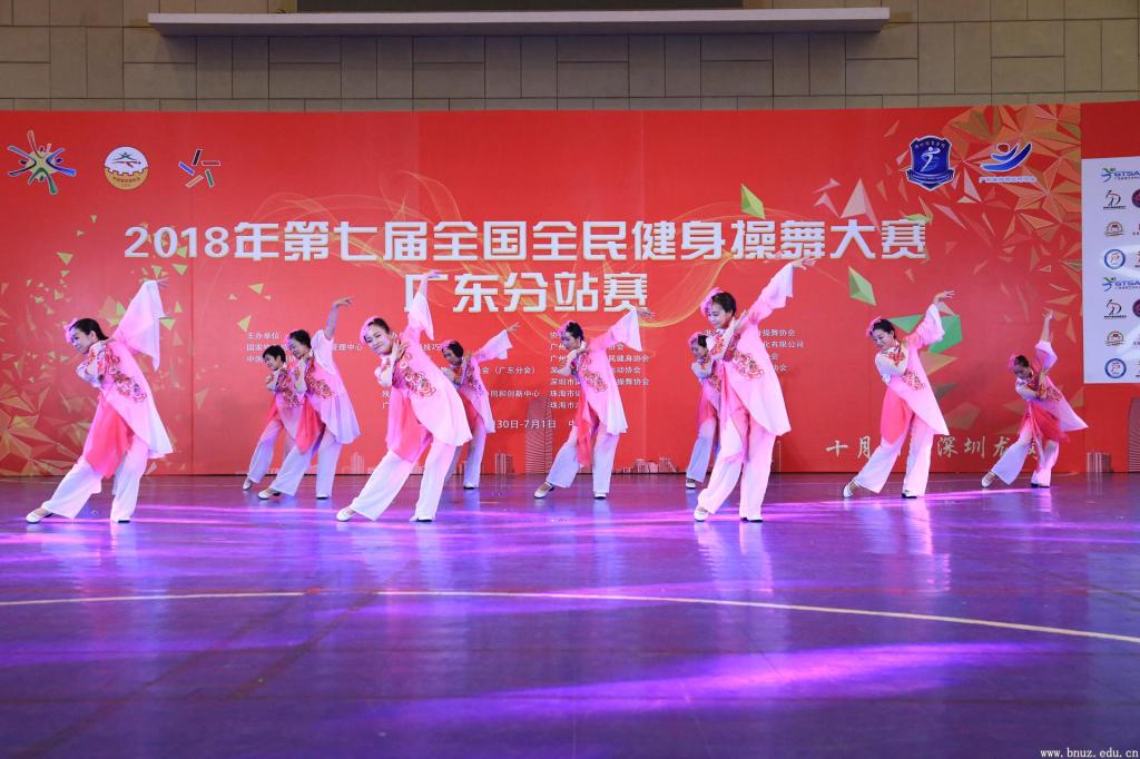 本次比赛,永利官网教师艺术团两支队伍在运动休闲学院杜赛伟老师的指导下,精心备赛,夜以继日地在教工之家舞蹈室训练。比赛日,她们不辞劳苦地早起奔赴广州参赛,克服舟车劳顿与酷热天气,以曼妙的舞姿、自信的态度、不凡的气度惊艳评委,当永利官网不俗的分数公布时,更是博得全场掌声。青年组与中年组各有韵味,都展现了分校教师较高的艺术觉悟以及艺术追求,更是带着北师大珠海分校的品牌走出珠海,走出广东。其舞蹈表演照片也被广东全民健身运动会官方微信公众平台等多家媒介媒体转载。接下来,永利官网教师艺术团将在今年10月份代表广东省参加2018年第七届全国全民健身操舞大赛全国赛,为校争光。