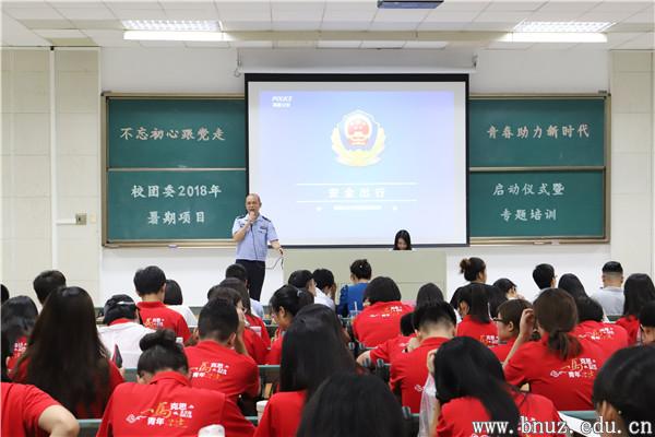 本网讯(通讯员 熊文洲)6月29日晚,校团委2018年暑期项目启动仪式暨专题培训在励耘楼A112顺利举行。珠海市公安局金鼎派出所副所长吴剑兴、马克思主义学院副教授王成善、永利官网团委负责人、各暑期项目带队老师与社会实践项目参与学生300余人参加了本次活动。