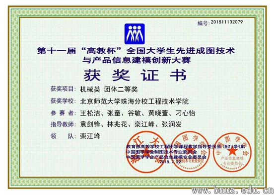 大赛设置了机械、建筑、道桥和水利四个专业类别的团体及个人竞赛。来自永利官网工程技术学院的9名参赛选手荣获产品数字化创新设计与3D打印技术一等奖、产品信息建模机械类团体二等奖。袁剑锋、林兆花、栾江峰和张润发4位老师获优秀指导教师奖。个人竞赛方面,2016级工业设计专业的王松洁同学和谷敏同学,2017级工业设计专业的黄晓萱同学和刘莹同学等四人获个人建模二等奖;2016级工业设计专业的张童同学和2017级工业设计专业的黄晓萱同学获个人尺规绘图三等奖。