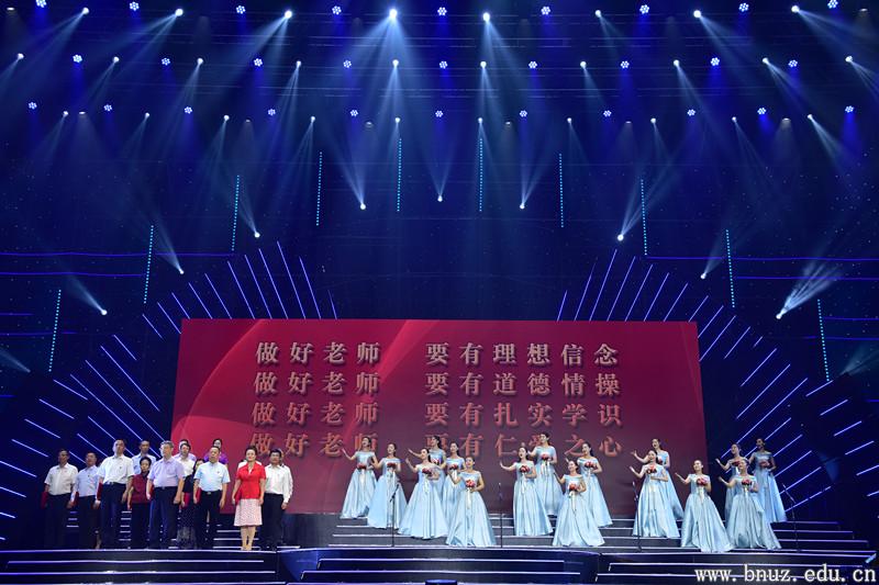 “身如火炬,象征光明与指引,寓意理想信念;顶镶枝叶,象征奉献与希望,寓意道德情操;底衬木铎,象征人文与教育,寓意扎实学识;杯形圆厚,象征关爱与包容,寓意仁爱之心”,伴随着饱含深情的释义,奖杯“木铎之光”揭幕。无论是奖杯设计还是典礼节目,全部为ylzzcom永利总站线路检测师生的原创作品。取材于真实教师故事的原创歌舞《我从西部来》《乡村女教师》、开场舞《我有个梦想》、主题曲《四有好老师》、获奖团队集体朗诵《大国良师》……无不诠释着北师大人对“四有”好老师精神独特而深刻的理解。
