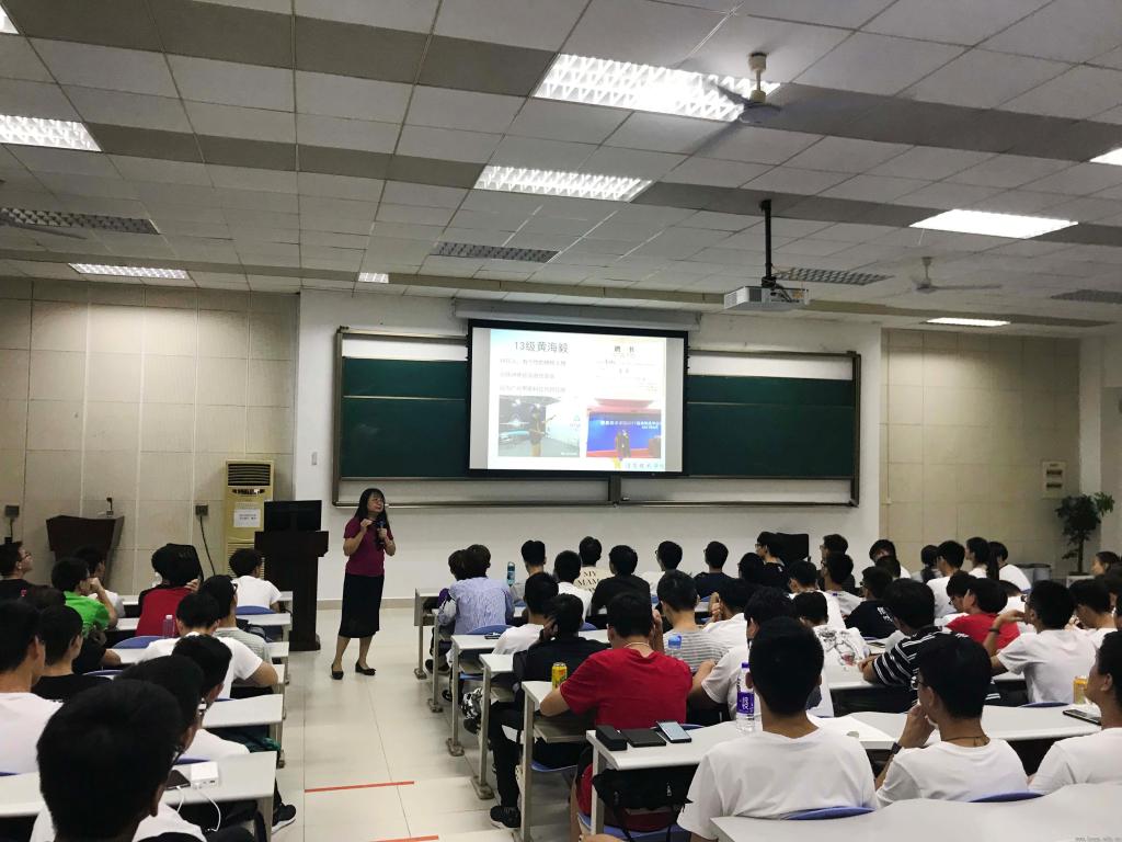 黄静教授介绍了麦可思发布的《2017年中国大学生就业报告》绿牌专业中涵盖了软件工程、网络工程、通信工程和电力系统自动化技术等与大家专业相同或者相关的专业名称,并以学院部分优秀校友为例,鼓励在校学生要学好专业知识,为将来就业打好基础。