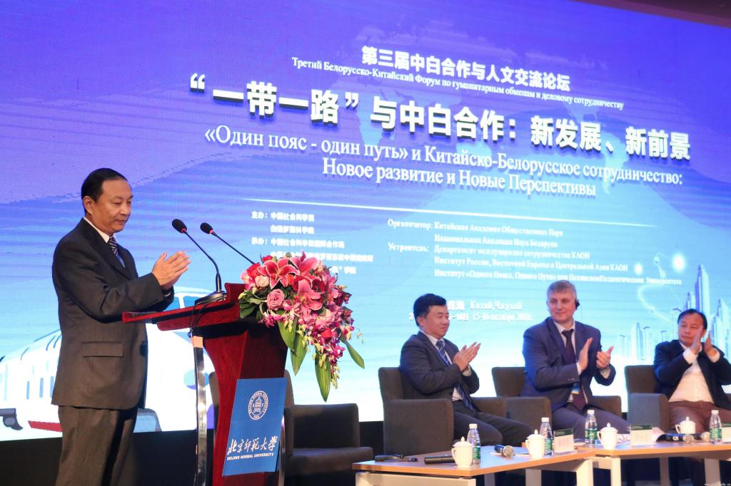 中国社会科学院副秘书长韩大川、白俄罗斯科学院主席团副主席卡扎克维奇、ylzzcom永利总站线路检测副校长周作宇、珠海市副市长阎武出席会议并致辞。