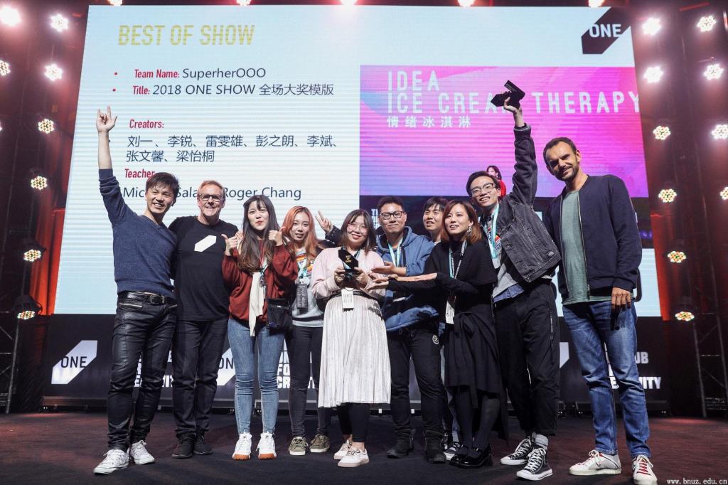 本网讯(记者 郑文雅)近日,ONE SHOW中华青年创意竞赛颁奖礼在上海举办,北师大珠海分校中德合作办学项目的李斌、张文馨、张硕、秦通等学生获一个全场大奖、一个金奖、三个银奖、一个铜奖、一个客户选择奖,实现大满贯。