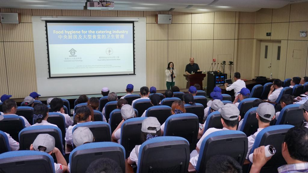 王丽哲博士围绕“食堂食品安全与营养管理”为主题,为厨房工作人员阐述了地面清洁、危害微生物控制、食品的储存、每日生原材料的感官检验以及如何避免食物中毒的相关理论知识。王丽哲博士重点阐述了微生物对于食品的危害,每年由于食品中的微生物,特别是细菌、病毒或寄生虫而导致的食物中毒案例很多。她指出,在日常工作中,厨房工作人员务必重视清洁和卫生,这包括个人身体和手部卫生、食物的妥善处理以及厨房和整个食堂内部的清洁卫生。