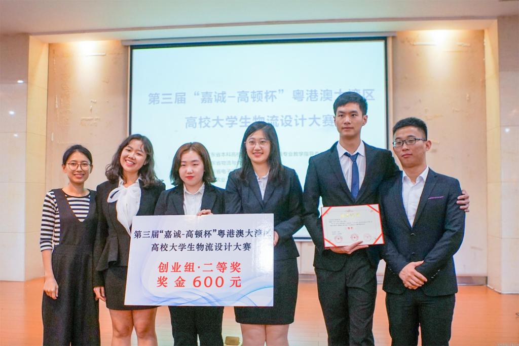 本网讯(通讯员 文婕)4月27日上午,第三届“嘉诚-高顿杯”粤港澳大湾区高校大学生物流设计大赛决赛颁奖典礼和闭幕式在华南农业大学举行。由来自物流学院不同年级不同专业的学生文婕、王翔宇、彭程、蔡嘉虹以及信息技术学院学生马平川组成的团队在赛事中获得创业组二等奖。