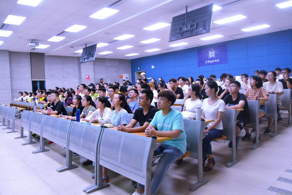 王树荫老师从“为什么上大学?”、“大学里有什么?”、“怎么样上大学?”三个方面为在场同学指引和解惑,通过大量的数据分析、人物典型介绍、历史知识、经典名言、经验指导等引发在场学生的积极思考。王树荫老师认为大学是人一生中特殊且重要的时期,它是同学们的专业形塑期、成长成熟期和梦想起航期;同学们通过大学的学习生活可以找到属于自己的领域,希望同学们要成为一个专业人士,牢记“专业”的重要性;人生学无止境,要有把过去归零的心态,既要牢牢把握现在,又不能只满足于眼前的成就,要对自己的人生进行规划,对自己的未来发展方向做好一个预估和选择。王树荫老师介绍了大学的历史和功能,认为大楼、大师、大气和大学生是大学的必备要素,大学功能包括但不限于人才培养、科学研究、社会服务、文化传承创新和国际合作交流,希望同学们在大学期间对大学精神进行一定的研究,好好珍惜在大学校园的宝贵时光。王树荫老师指出,由于在大学生活中同学们要面临和中学时截然不同的学习要求、人际关系和生活环境,大家要善于调整、提升自己,以适应新的环境、形势和要求;大学里一定要努力成长、努力收获,根据自己的兴趣与能力去选择目标,然后掌握好学习的方法,树立全新的学习理念,不断的发奋努力最终达成目标,让优秀成为一种习惯。讲座的最后,王树荫老师以“为中华民族伟大复兴而读书!”作为结语,呼吁同学们共同行动。
