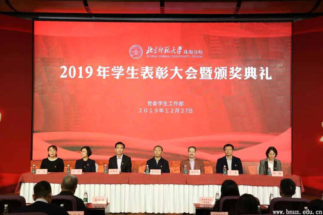 本网讯(通讯员 陈晓霞)12月27日下午,永利官网“榜样北师”2019年学生表彰大会暨颁奖典礼在国际交流中心国会厅举行。珠海分校党委书记耿向东、珠海校区党委副书记兼珠海分校党委副书记亓振华,学校党委委员代表、各院部和相关职能部门负责人代表、全体辅导员、授奖学生代表和观礼学生代表300余人参加了大会。大会由党委学生工作部副部长覃炜斐主持。