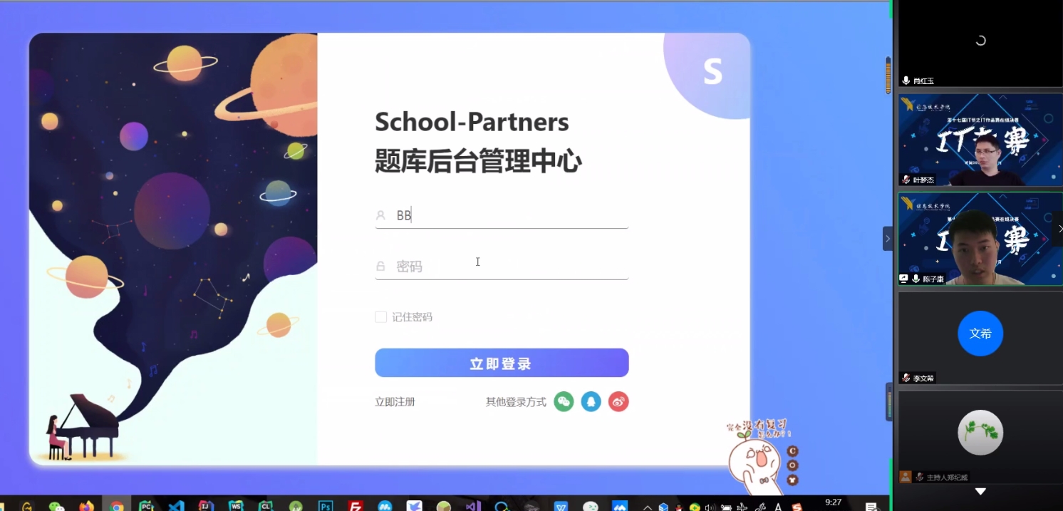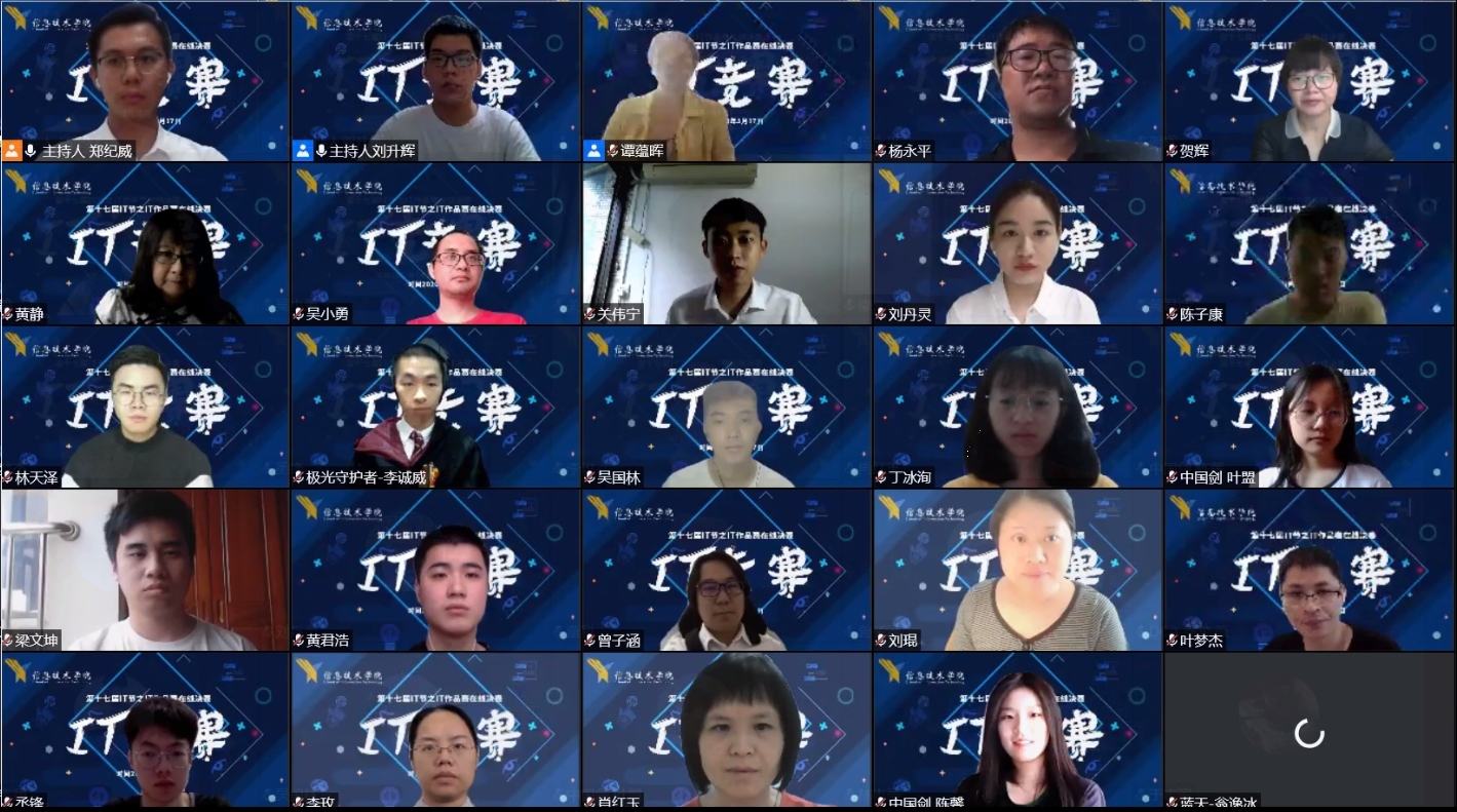 IT节是信息技术学院一项盛大的学生学科竞赛活动,今年已是第十七届,也是最特殊的一届。受疫情影响,今年IT节各环节的分组初赛均采用网络竞赛形式进行。IT作品赛是IT节中最核心的竞赛活动,含软件开发类、软硬件一体类和设计类、优秀毕设类四个组,经过分组赛的筛选,本次有12份作品进入决赛。决赛使用腾讯会议直播平台,以线上答辩形式有序展开。