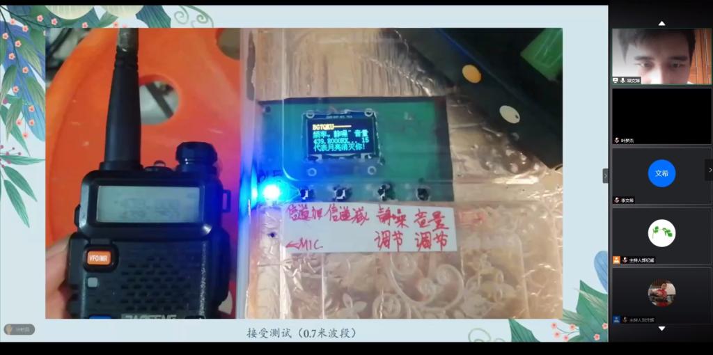 第六组梁文坤同学的作品《基于STC8单片机的带蓝牙遥控四频段调频通信系统》来自软硬件一体组,该作品在去年参赛作品的基础上继续做了更多的功能拓展和性能优化,提高了信号发射质量和通信距离。
