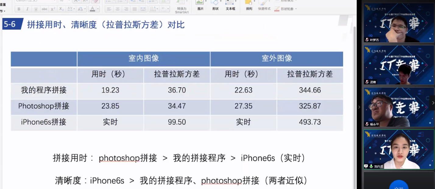 第一组刘丹灵同学的作品《基于序列图像的全景图像自动拼接》来自优秀毕设组,展示了精致的全景图像拼接技术。