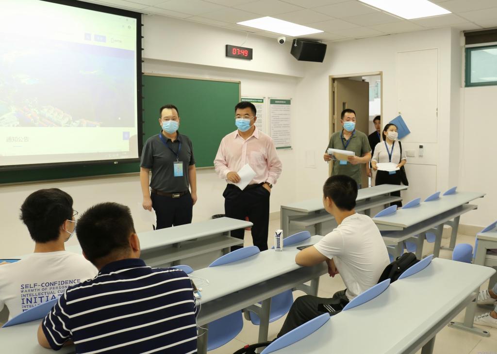 本网讯(通讯员 郭婷婷)9月7日是新学期开学第一天,校领导分为五个巡视组,在相关职能部门人员陪同下,到各教学楼巡视珠海园区教学秩序和教学场所疫情防控工作。