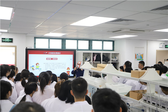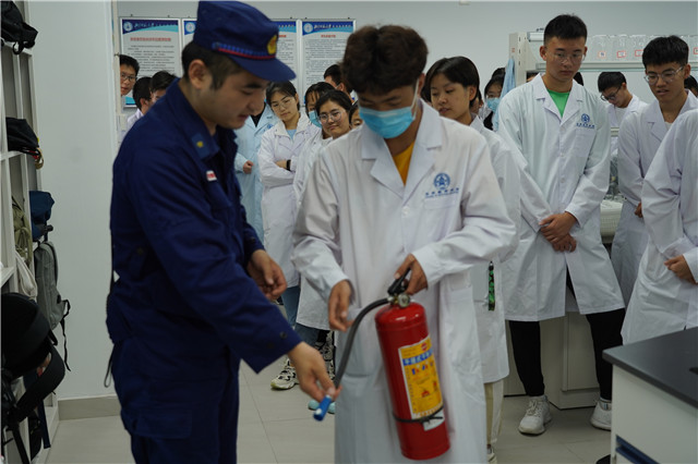 活动邀请金鼎消防中队救援宣讲专家进行消防知识培训,包括消防器材的使用和逃生救援常识,主讲人从防火防爆基础知识、危险化学品和废弃物基础防护知识、用电安全以及应急处理和个人防护等方面作了讲解,并与师生进行了现场交流。