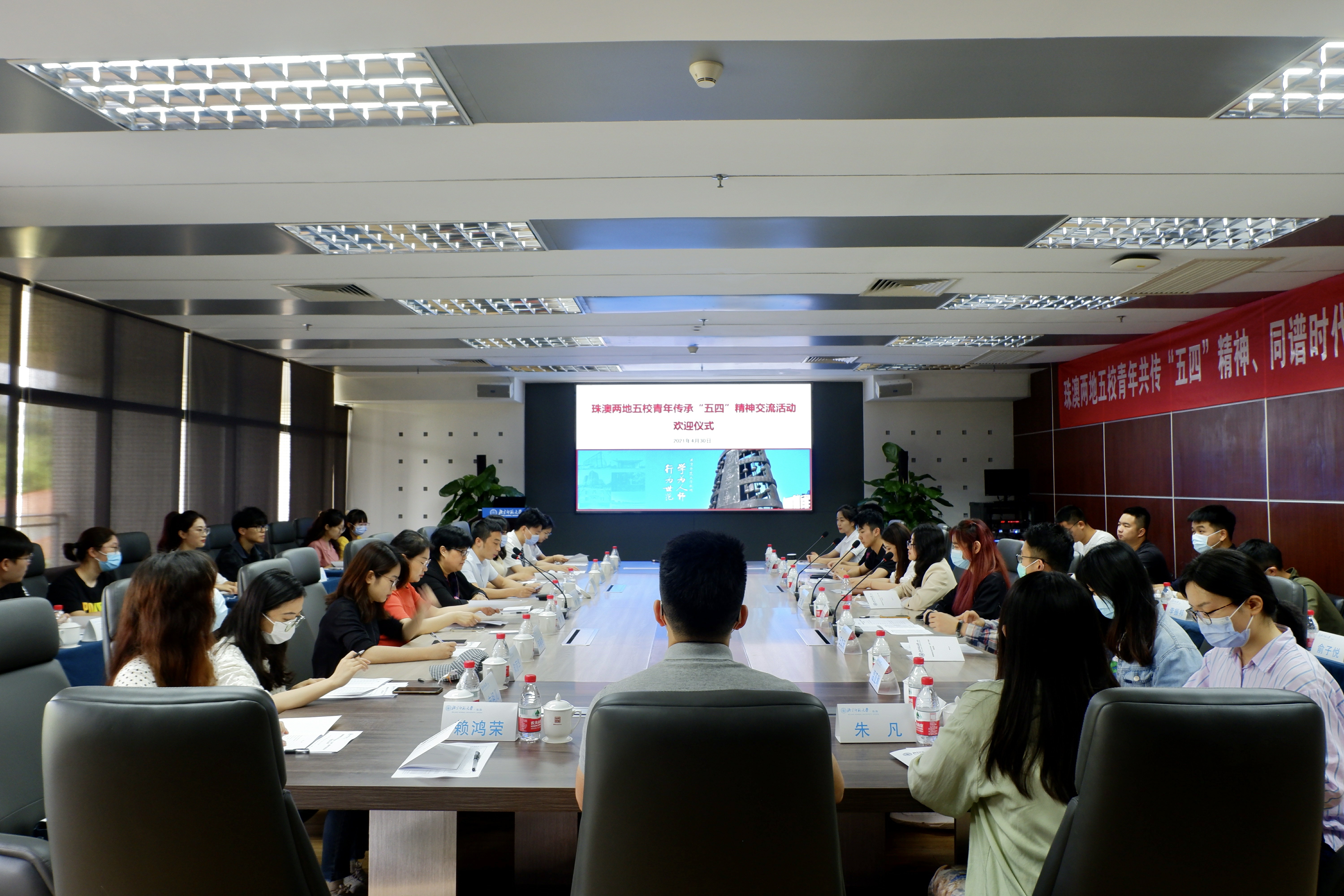 在“五四”青年节来临前夕,4月30日,ylzzcom永利总站线路检测珠海园区组织举办珠澳两地五校青年传承“五四”精神交流活动。来自澳门大学、澳门科技大学、澳门理工学院,以及北师大珠海校区、北师大珠海分校的学生代表和老师40余人参加了活动。