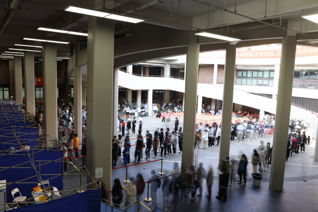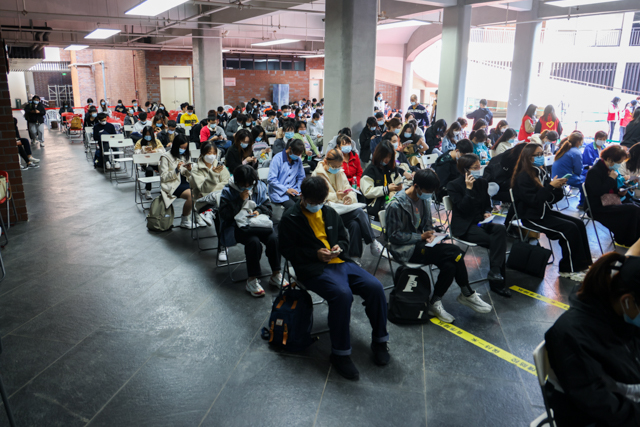 按照学校制定的新冠疫苗“加强针”接种工作方案,工作人员提前对现场深度保洁消杀,保障师生员工安全有序接种。在预定的时间段,前来接种新冠疫苗“加强针”的师生有序排队,志愿者在接种现场引导接种人员进入测温区、填写知情同意书、填写《珠海高新区人民医院健康申报卡》,录入信息、接种疫苗,专设留观区和突发情况救治区,以便完成疫苗接种的师生进行半小时健康观察。师生们按照间隔一米线的要求,自觉排队并佩戴好口罩,有序等候。从入场鉴诊、到接种登记、再到留观30分钟离场,各环节有序高效开展。