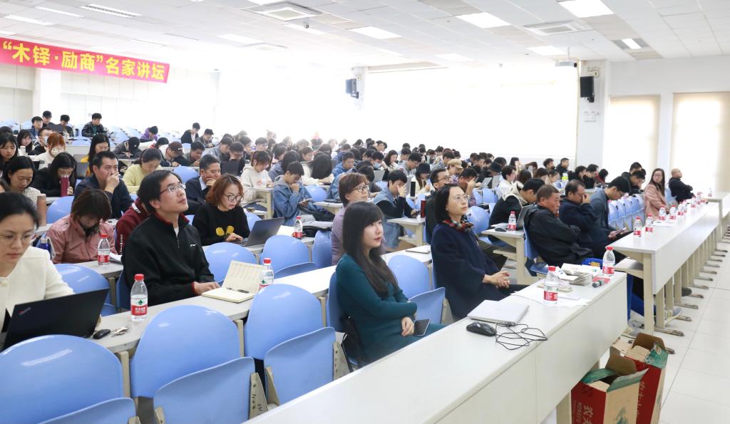 本网讯 12月3日上午,由国际商学部举办的“木铎•励商”名家讲坛第十五期在励耘楼B408通过线上和线下相结合的方式顺利举行。中南财经政法大学会计学院副院长李四海教授受邀做了题为《风动-幡动-心动:唤醒你的财商思维》的专题讲座。国际商学部教师和部分学生参加了本次活动。