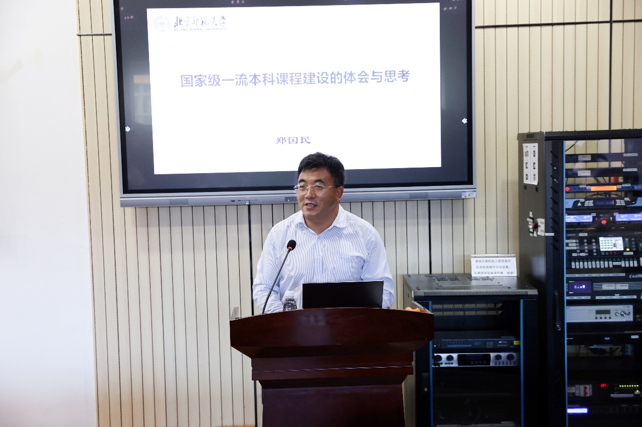 郑国民教授主要以“语文课程改革理论与实践”课程为例,分享其从国家精品视频资源共享课、国家精品在线开放课程到国家级一流本科课程的建设经过,详细介绍了课程设计理念、课程目标、课程安排和教师团队等内容。他希望,在教学设计和教学改革中,老师们能通过组建教学团队的方式,多多沟通学习,发挥团队老师的优势,思考课程在人才培养中的独特价值和功能,激发学生更深层次的思考,学生通过课堂上思维和情感的碰撞,进而获得解决问题的方法。