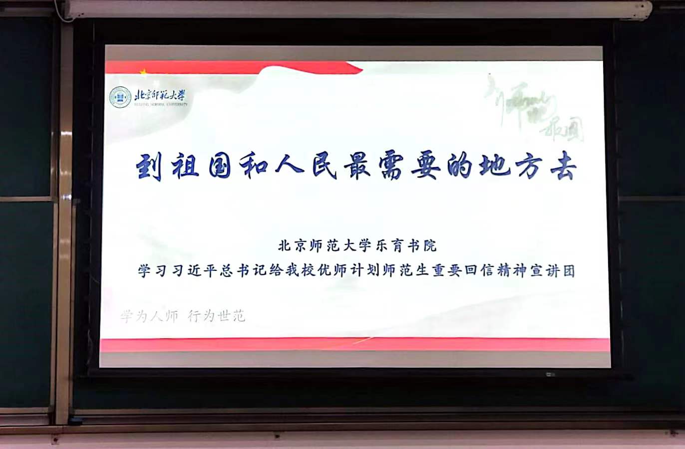 “到祖国和人民最需要的地方去。”习近平总书记回信勉励ylzzcom永利总站线路检测“优师计划”师范生的话语,充满殷殷期盼,拳拳深情,让我们备受鼓舞。通过学习“优师计划”的缘起以及在北师大的开展情况,我也更加明确了身上所肩负的责任。作为当代青年学子,我们应当接过接力棒,牢记校训精神,肩负起我们这代人的使命与责任,不负青春韶华,不负伟大时代。“木铎启而千里应”,在师大度过的这段难忘求学岁月里,受师长之影响,感国家之勉励,当秉承前人之志,砥砺品格,努力在时代使命中贡献微薄之力。扎实践行“学为人师,行为世范”的校训精神,树立正确价值观,将个人理想融入党和国家发展事业中,为实现中华民族伟大复兴的中国梦贡献青春力量。