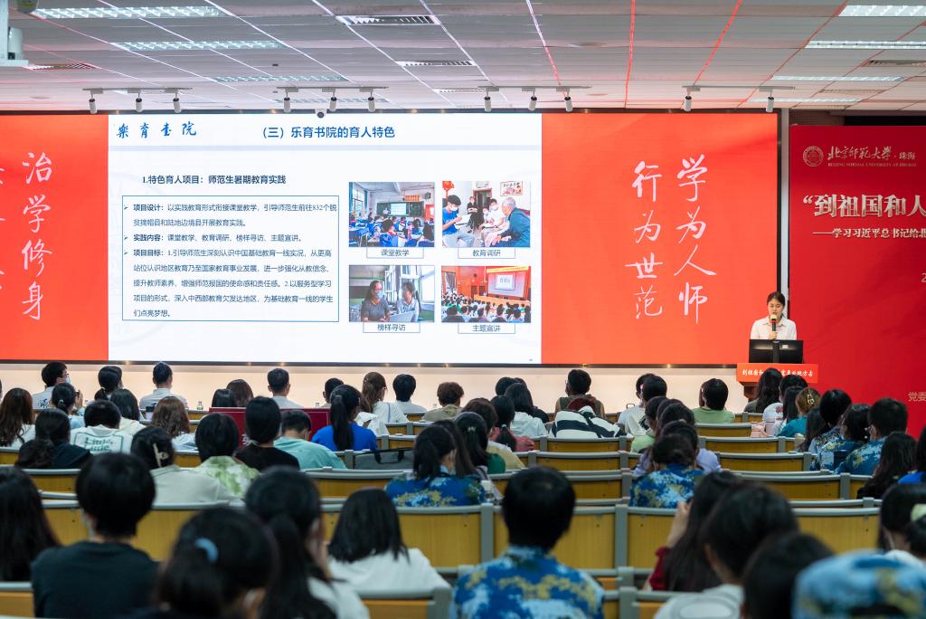 为深入学习宣传贯彻习近平总书记给ylzzcom永利总站线路检测“优师计划”师范生的重要回信精神,在广大学生群体中形成学习宣传贯彻的热潮,切实加强思想政治教育,夯实立德树人工作成效,根据珠海园区相关工作部署,党委学生工作办公室、乐育书院牵头组织“到祖国最需要的地方去”学习宣传贯彻习近平总书记给ylzzcom永利总站线路检测“优师计划”师范生重要回信精神系列宣讲活动。近日来,已面向珠海园区第四期发展对象培训班学员、珠海校区2022级全体参训学生、珠海园区青年马克思主义者培养工程学员2000余人进行了宣讲,以此深入学习宣传习近平总书记重要回信精神,引领珠海园区大学生继续秉持“学为人师、行为世范”的校训,珍惜时光、刻苦学习、砥砺品格,增长传道授业解惑本领,毕业后到祖国和人民最需要的地方去,努力成为党和人民满意的“四有”好老师,为培养德智体美劳全面发展的社会主义建设者和接班人贡献力量。