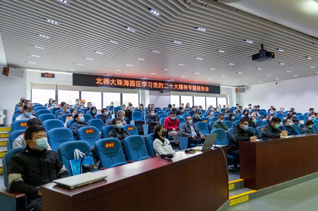 12月2日上午,北师大珠海园区特邀北师大宣讲团成员、学术委员会主任韩震教授作党的二十大精神专题报告。报告会以线上线下相结合的形式举行。园区党政领导班子成员、各学院(部)、书院、职能部门负责人和教师党支部书记参加。报告会由北师大珠海校区党委副书记、珠海分校党委副书记于小雷主持。