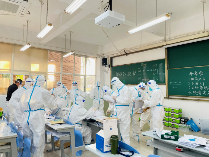 考务工作小组充分发扬不怕牺牲、敢于担当的精神,面对复杂疫情形势下考务及监考人员不断减员以及本次研考面临的特殊考场设置和新增考务工作要求,在园区领导的统一指挥下,做实做细各项准备工作,要求所有工作人员务必充分认识研考的重要性,提高政治站位,确保考生身心安全、试卷安全、考试程序安全和考场秩序安全。