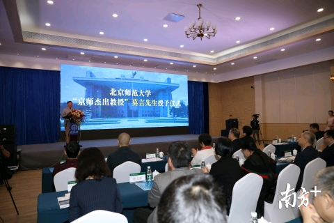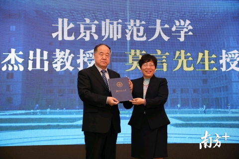 论坛上,著名作家、诺贝尔文学奖获得者莫言被授予北师大首位“京师杰出教授”。余华则被聘任为北师大教授。三十年前,余华和莫言同为北师大与鲁迅文学院合办研修班的学生,同时师从童庆炳先生。如今,两人又成为北师大的同事。