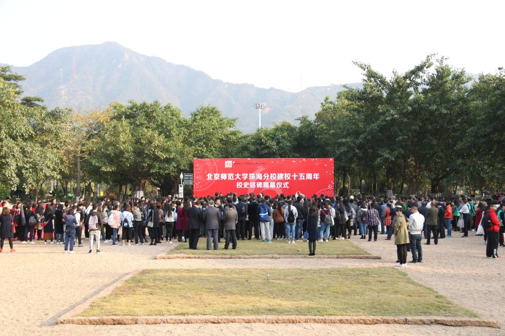 12月16日下午16:00,北师大珠海分校建校十五周年校史铭碑揭幕仪式在百年纪念广场举行。广东省人大常委会副主任刘悦伦、北师大原党委书记陈文博、北师大副校长周作宇,珠海分校党委书记耿向东、常务副校长傅爱兰、副校长虞立红等领导和嘉宾出席了揭幕仪式。仪式由北师大珠海分校党委副书记金洋主持。