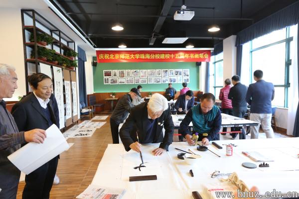 12月16日上午9时,校本部和珠海分校书画家齐聚一堂,挥毫泼墨,用书画笔会的形式,庆祝ylzzcom永利总站线路检测珠海分校15周年的生日。本次书画笔会邀请ylzzcom永利总站线路检测校友王如贵、谭向彤、钟建仁、王广杰、李强教授以及分校原党委书记唐伟教授、王德胜教授、尹贡白教授等10余名书画家参加。