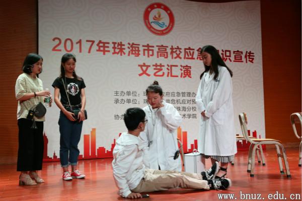 本网讯(通讯员 郭妮娇)2017年5月19日,“2017年珠海市高校应急知识宣传文艺汇演”活动在城市职业技术学院圆满落幕。本次汇演由珠海市应急管理办公室主办,永利官网和珠海市公共危机应对预防学会承办,城市职业技术学院协办。活动主题为“关爱生命,从我做起”,旨在通过喜闻乐见的文艺节目,增强师生的安全防范能力、培育安全文化,让安全成为习惯,让习惯更加安全。永利官网及中山大学珠海校区、暨南大学珠海校区、珠海城市职业技术学院、吉林大学珠海学院等十所高校参与了本次汇演。