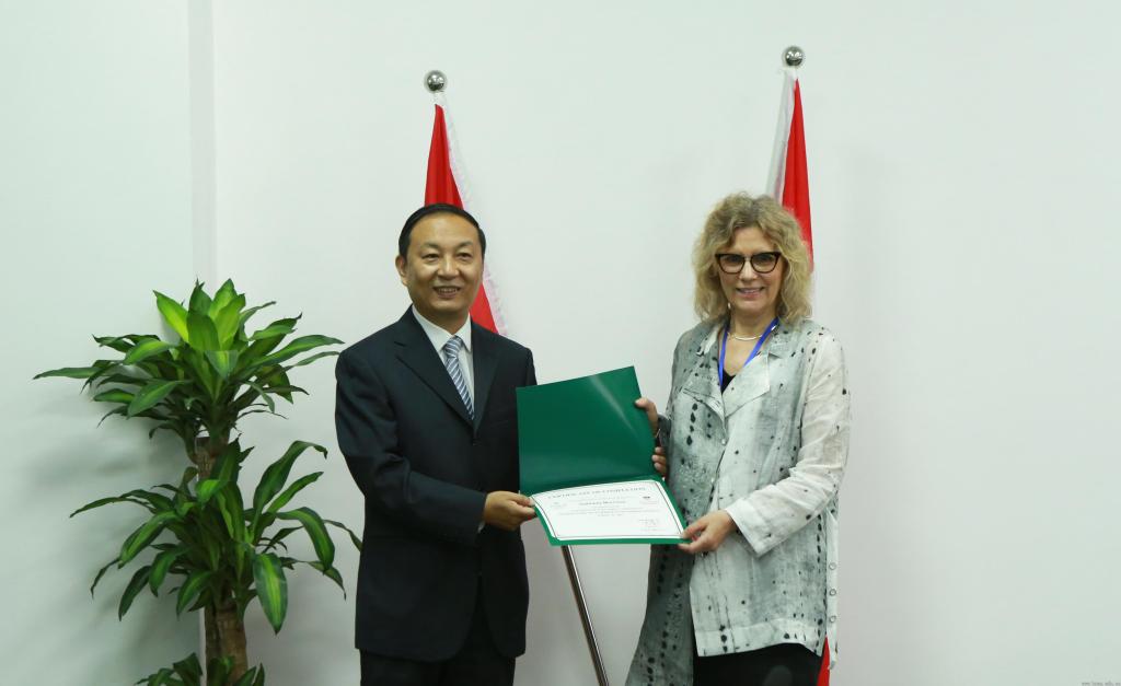 6月9日,永利官网国际交流与合作处处长甘春妍向代表团成员介绍了中国高等教育的国际化发展,中加合作办学项目及中德合作办学项目的项目主管与代表团分享了在跨文化合作中的经验与心得。结业典礼中,永利官网党委书记耿向东为代表团成员颁发结业证书并赠送纪念品。