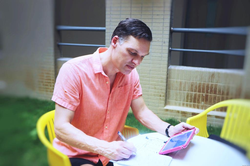 本网讯(校记者团 官美瑜 李达棋)盛夏的午后,阳光惟其盛烈。记者如期来到了采访地点,外教David Koening带着灿烂的笑容走上前来,给人亲切友好的感觉,记者紧张感瞬间得到舒缓。