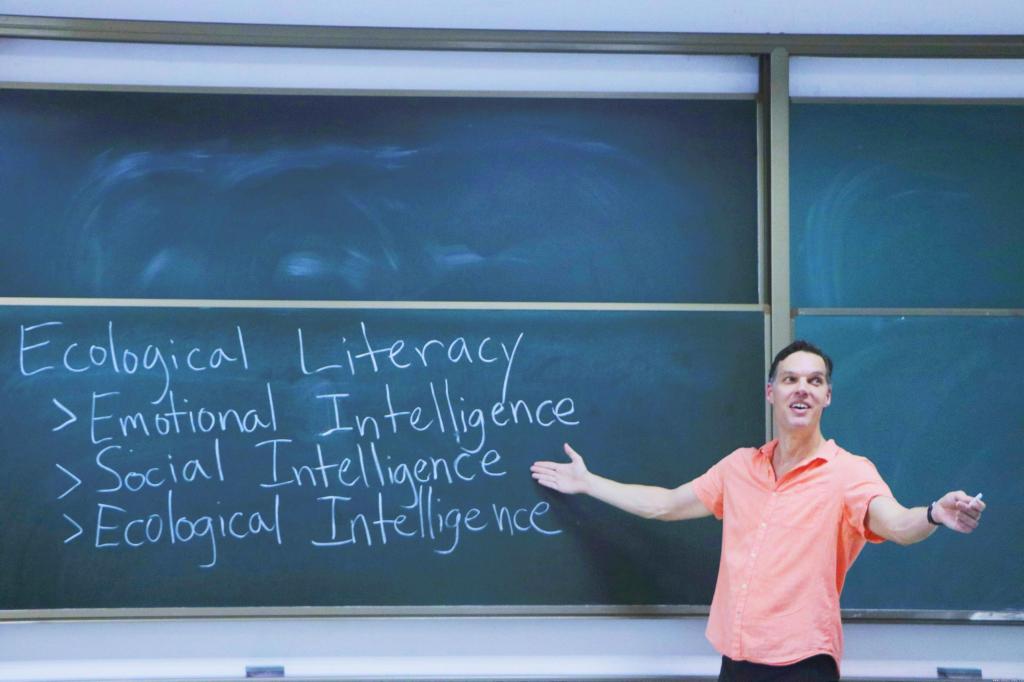 他开设了一门个性化选修课,这门课程叫做生态科学建设,他认为在当今社会,要想更好地生活,不能仅仅满足于物质的需求,情商和人际交往能力已经远远比智商更为重要。所以,课堂上,他总是以他独特的理念来给学生打开生态科学的视野,他还常常让学生们写个人发展规划,通过这种方式告诉学生要把目标考虑得更加长远,同时更加诚恳地去面对自己的未来。