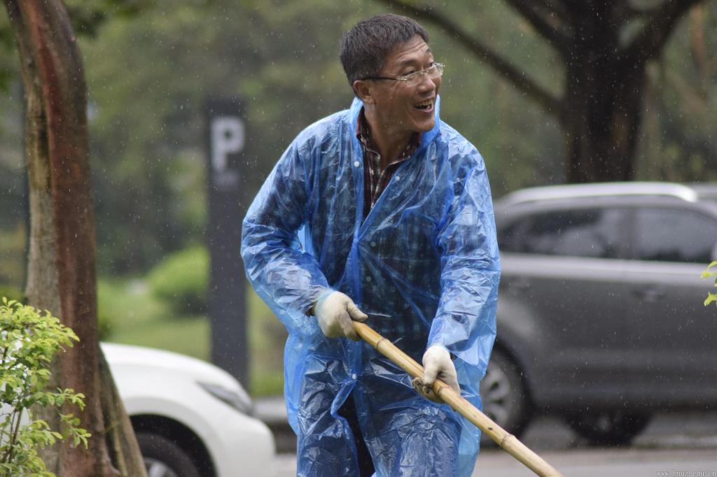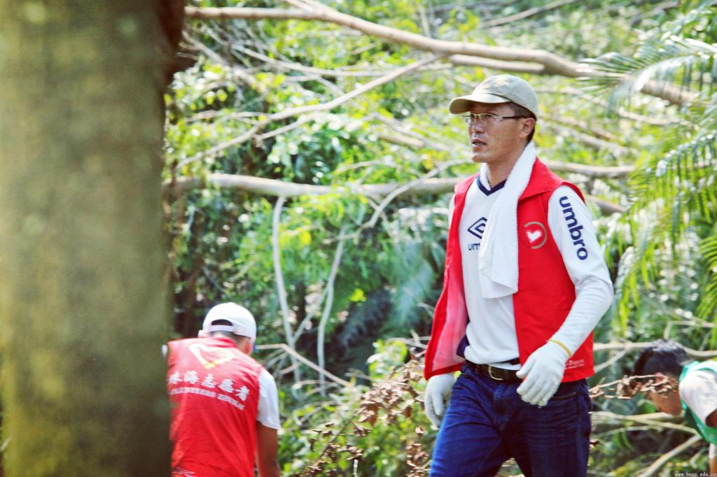 有一次,周老师的大拇指被树枝划伤,发生脓肿而不觉,又在收拾那些浸泡着雨水的垃圾时,感染上细菌,直到回家才涂药水消毒。他说:“当时任务重、时间紧,有些小磕小碰也没什么,作为北师珠的一员我本来就有义务帮忙救灾,而且9月份就会有大批学生入学,急需恢复一个舒适有序的生活环境,所以时间很赶,时不待我,不能放松呀!”